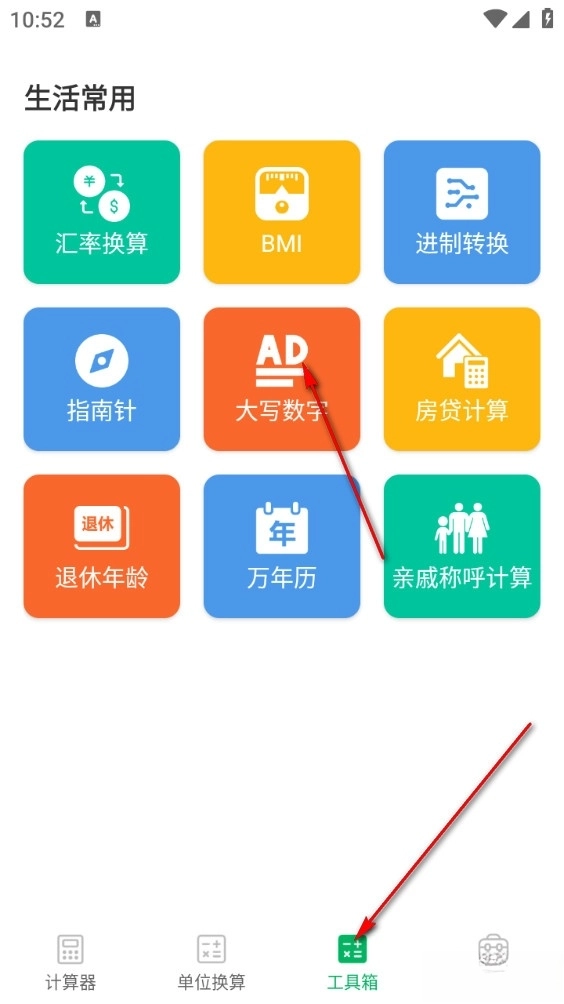工具箱里有汇率换算、指南针、万年历这些功能,点一下就能直接用了