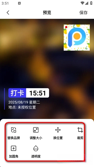 选择品牌logo时,可自由替换、调整大小以及更换位置。