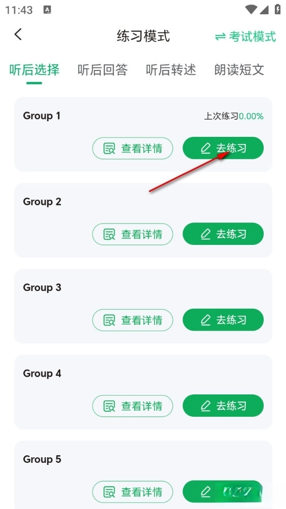 最后再点击去练习即可开始刷题