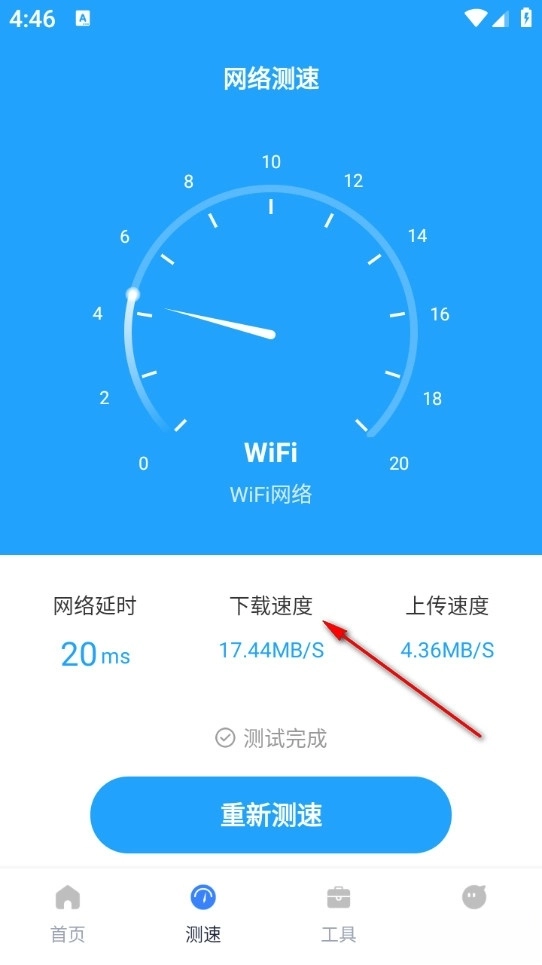 进入软件后点击下方测速