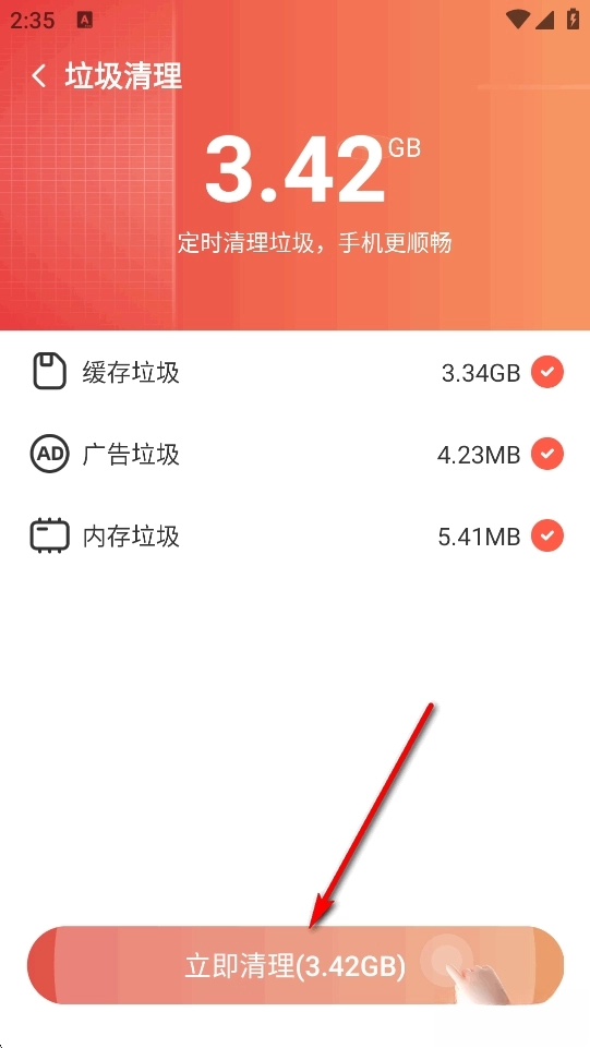 点击【立即清理】