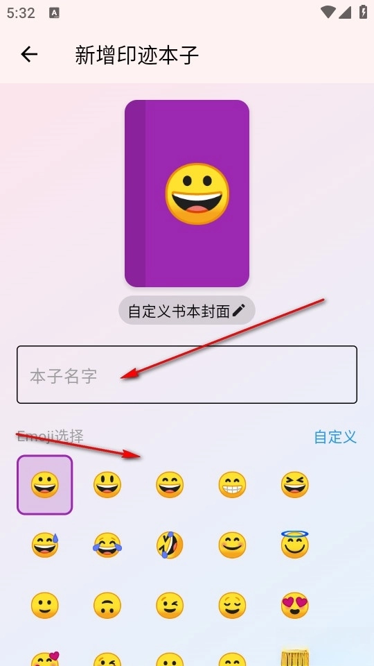 然后我们可以在创建新本子时给它起个名字,还能挑选本子的颜色以及专属表情,以此来代表自己这段时间的心情。