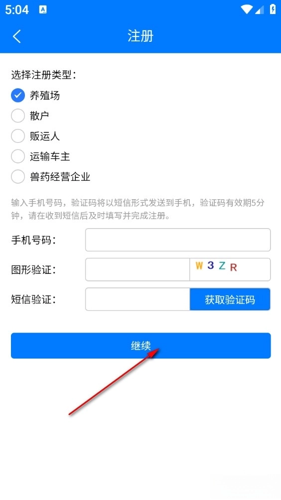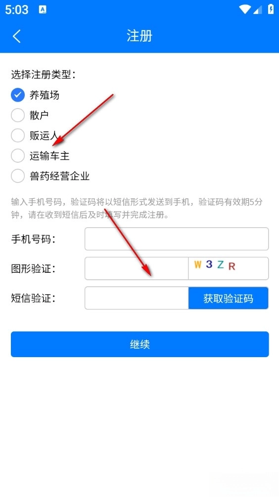 输入手机号、验证码再选择注册类型