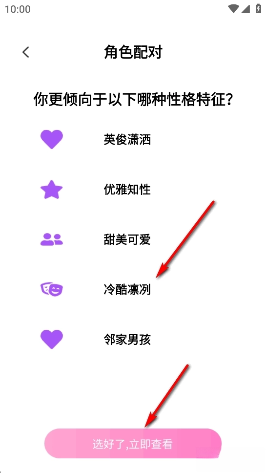再次对角色性格特征倾向进行选择,随后点击【选好了,立即查看】按钮。