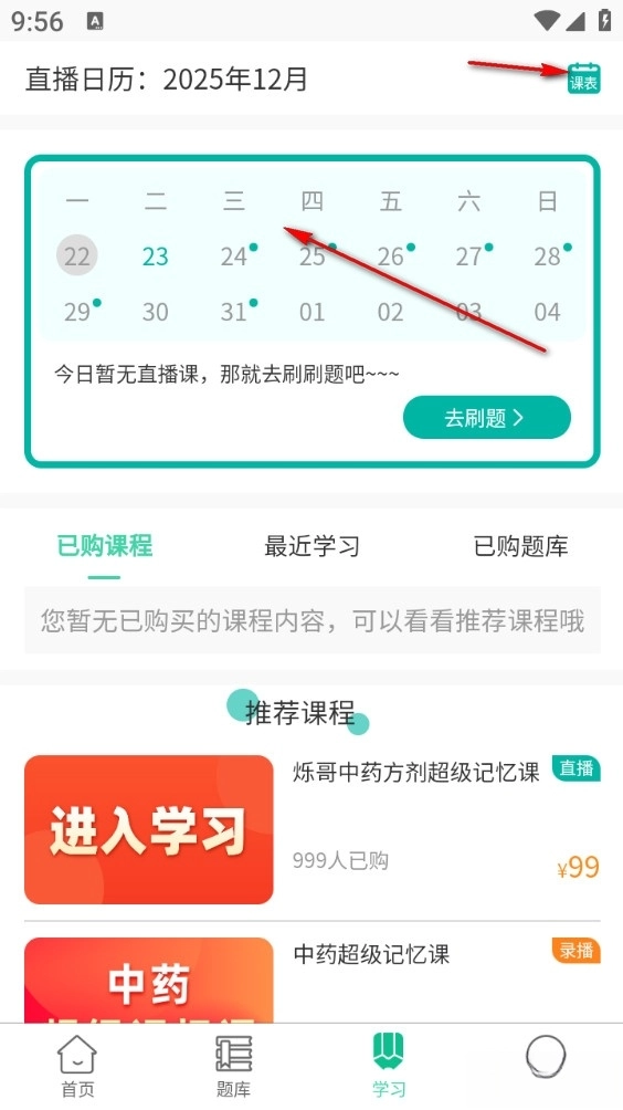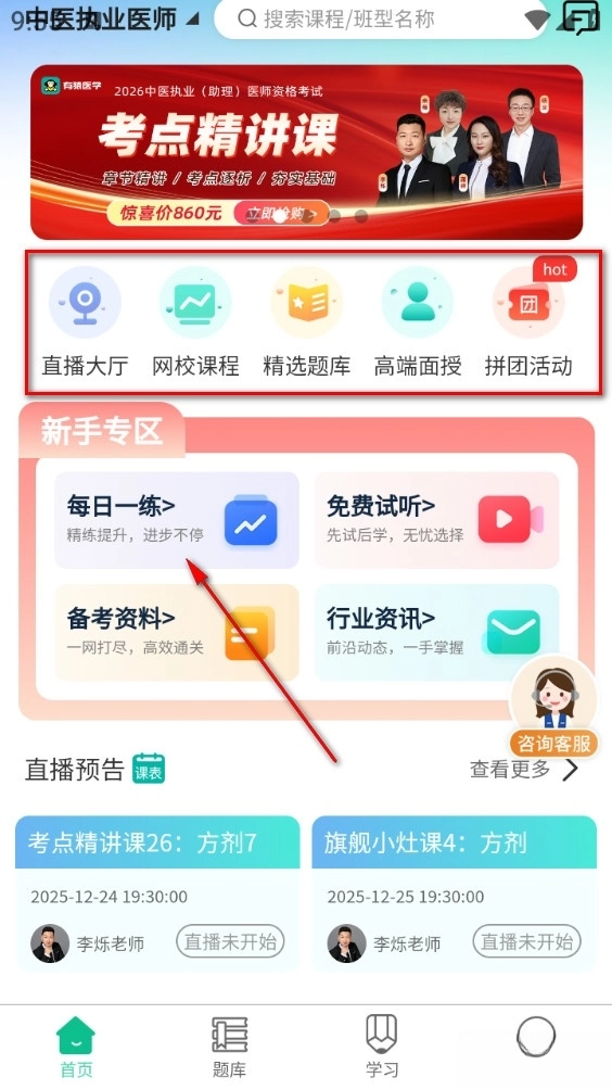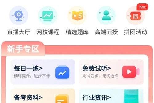 点击首页选择学习方式,可选直播、网课、资料分享等