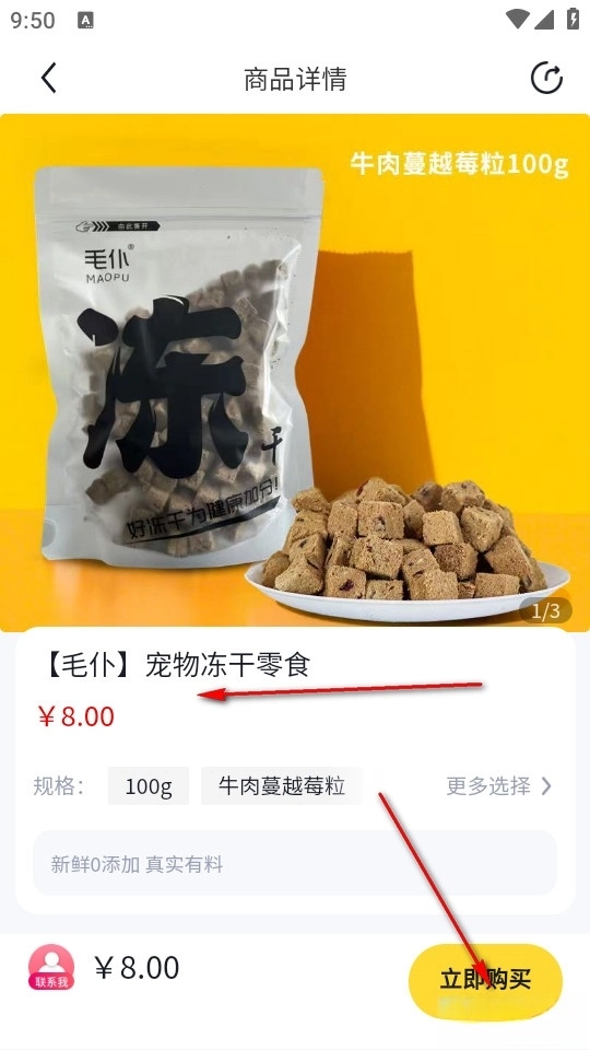 这样我们就能看到商品克数标签之类的详细信息,之后点击右下角的购买按钮就可以了。