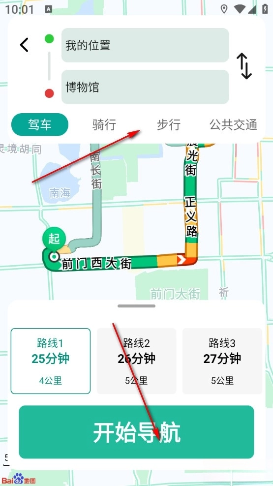 然后选择出行方式点击下面的开始导航