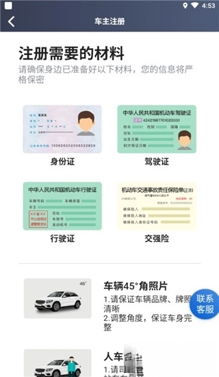 准备注册所需的各类材料,包括身份证、驾驶证、行驶证、交强险凭证以及车辆照片等。