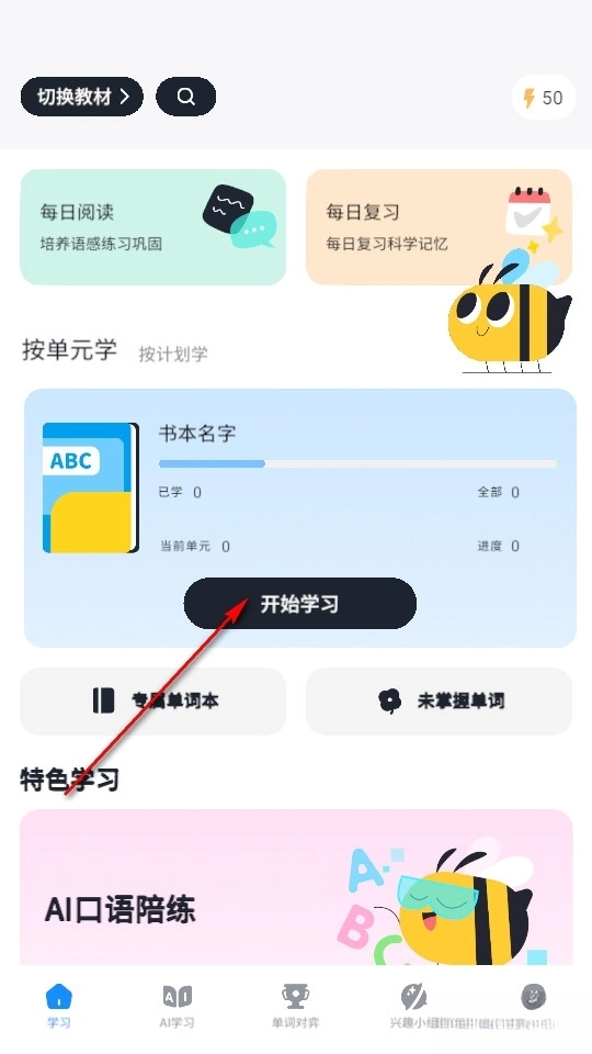 我们首先在首页点击开始学习