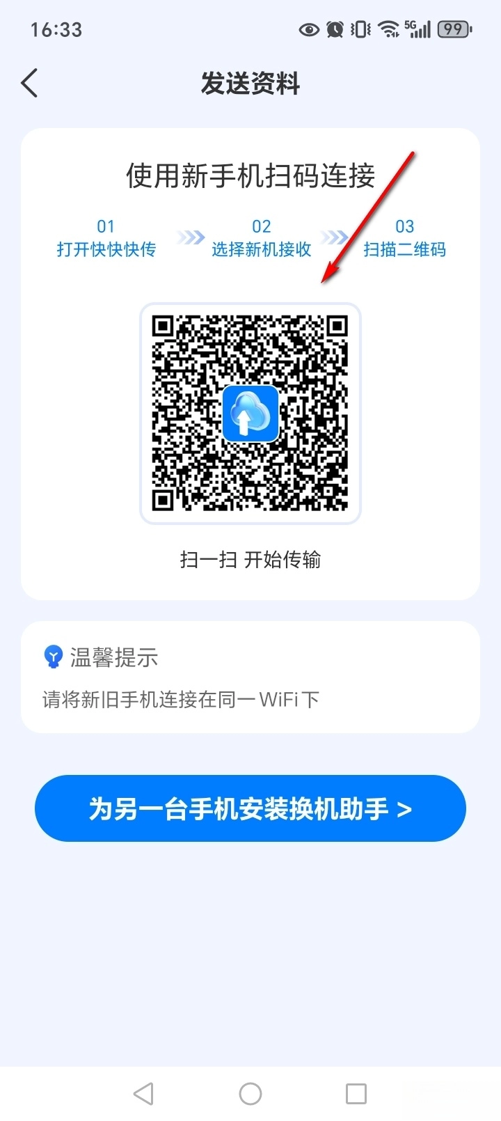 请注意:新手机与旧手机均需安装本软件,并且两者要连接同一WiFi网络。