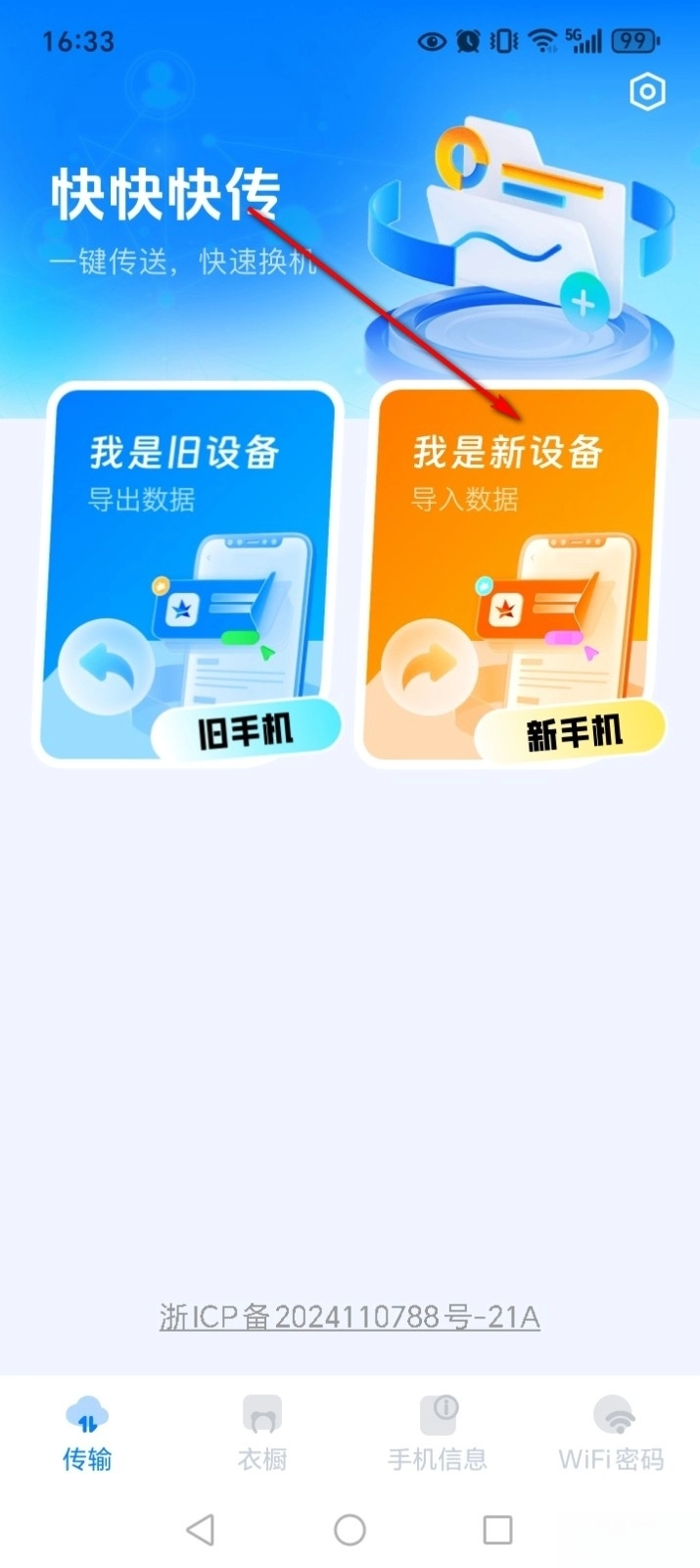 旧手机进入软件点击【我是旧设备】