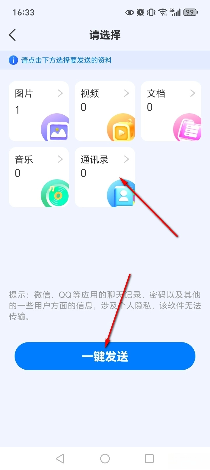 选择数据后点击【一键发送】