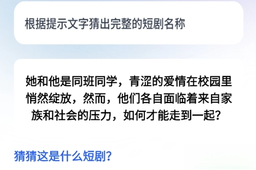 “根据文字提示猜短剧名称”是一场考验脑力与短剧储备量的较量。几句暗藏深意的描述,或许是剧情的关键转折点,或许是角色的突出特质,在细微线索中逐步拼凑,揭晓正确答案的那一刻,既有茅塞顿开的愉悦,也能勾起对经典短剧的记忆。