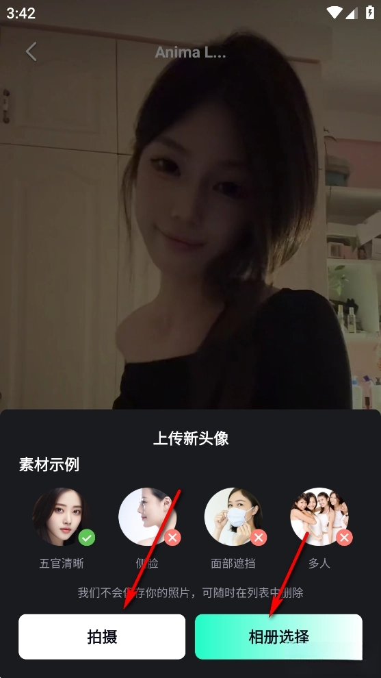 拍摄或者从相册选择一张人脸照片