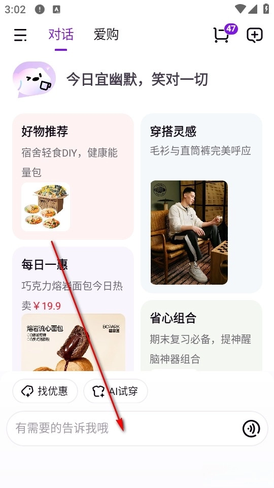 使用AI智能导购功能,能助力用户精准选购商品,精准找到契合自身需求且心仪的商品进行购买。