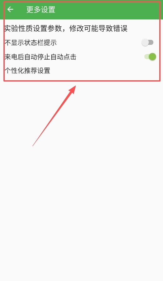 在更多设置中,你可以开启来电自动停止功能来避免打扰,也能关闭状态栏提示使界面更清爽,不过要留意那些标注为实验性质的参数。