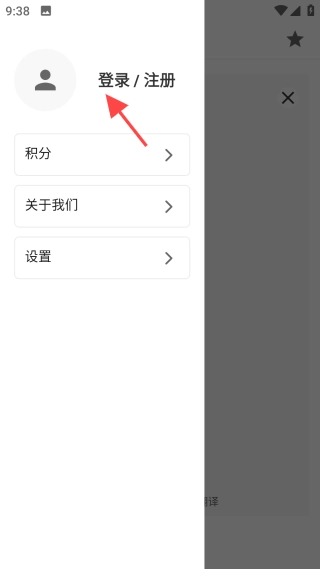 进入主界面后,点击左上角的图标,再点击【登录/注册】图标。