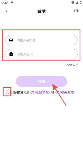 输入手机号码与密码,勾选相关事项后,点击【登录】按钮就能完成登录操作。