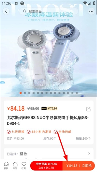 确认商品信息后点击"立即抢购"完成购买。