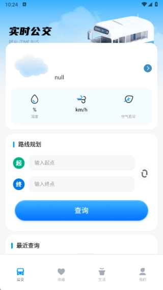 在公交查询页面,只需输入起点和终点,就能获取对应的公交信息。