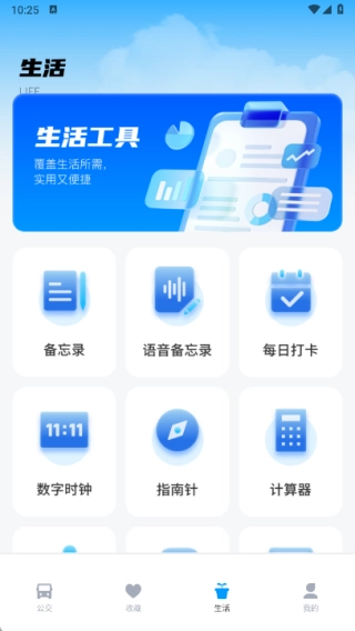 在生活页面里,你可以找到备忘录、语音备忘录、每日打卡、数字时钟之类的功能。