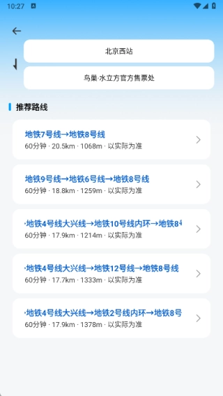 在查询结果页面,您能够随时查看系统推荐的路线,清楚了解具体的乘坐方向。
