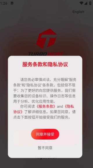 完成安装后,仔细阅读服务条款与隐私协议,点击“同意并接受”按钮,就能进入到下一个页面。