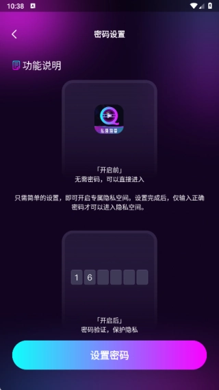 可以把手机里那些不想被他人查看的照片和视频导入进来,通过专属加密处理后进行隐藏,只有输入正确的密码,才能找到这些文件。