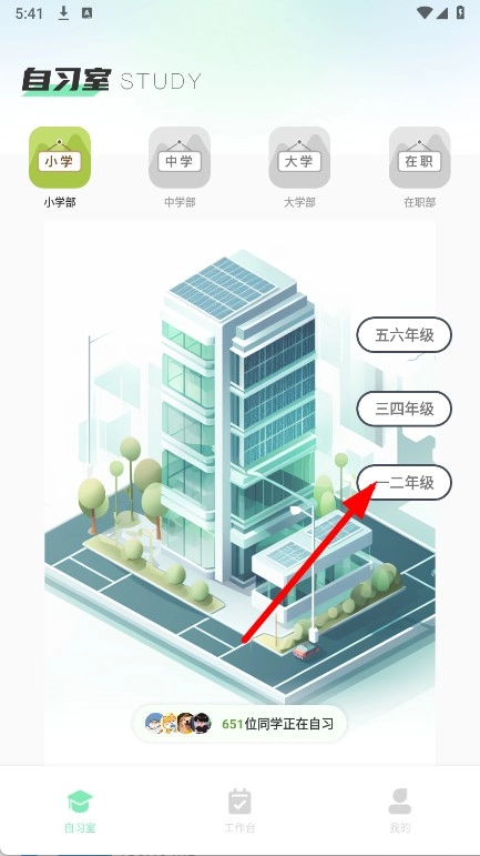 打开,在自习室页面选择对应学段。
