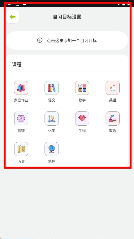 选座完成后进入自习目标设置页面,点击即可添加自习目标。