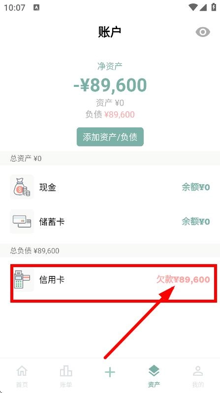 在账户页面,点击信用卡欠款区域,即可进入信用卡详情页面。