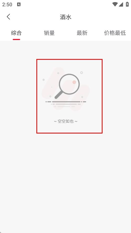 在酒水商品列表页面,能查看酒水类商品,目前页面显示为空,说明暂时没有酒水商品。