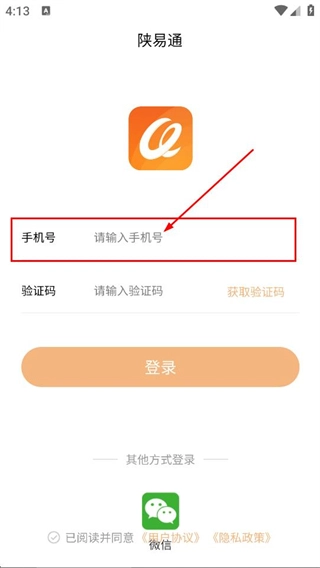 之后我们在陕易通的登录页面,输入手机号码,接着开展下一步的操作。