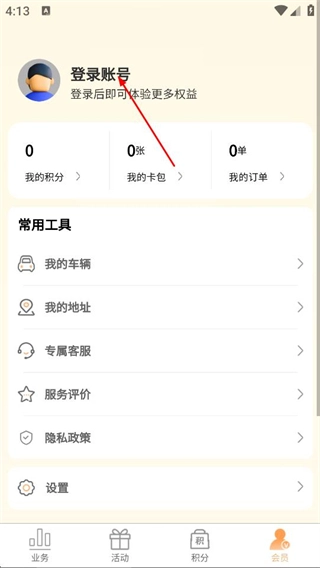 在陕易通首页,点击底部会员,进入个人中心页面。