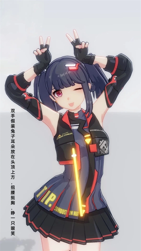 8、双手比成兔子耳朵的样子举在头顶,同时扭扭腰、挺挺胸,再俏皮地睁一只眼笑起来