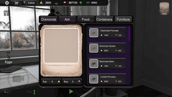 4、在商店里面可以购买到各种类型的蚂蚁。
