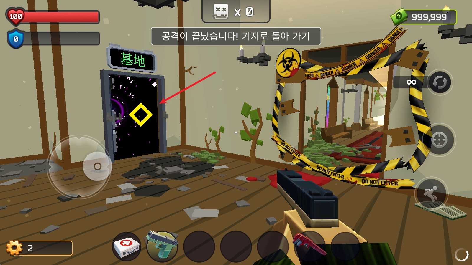当我们把关卡里的僵尸全部消灭干净,就能借助传送门返回基地了。