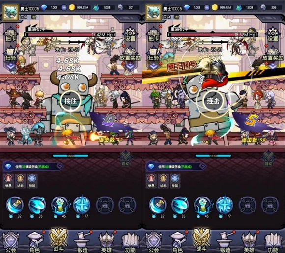 游戏里有大量英雄可供玩家自由组合阵容,而轻松休闲的放置玩法能带来别样的体验。