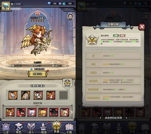 游戏里的英雄彼此存在羁绊关系,当集齐羁绊内的全部英雄后,就能解锁对应的连携技能。这类技能在战斗过程中会随机触发,涵盖了伤害型、辅助型等丰富多样的类型。而当构成该羁绊的所有英雄星级得到提升时,连携技能的效果也会随之增强。