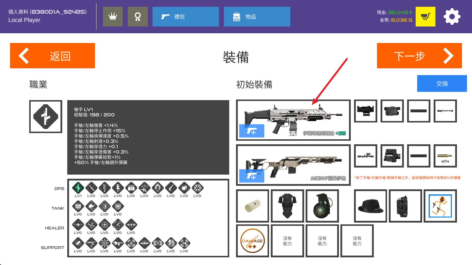 点击右侧的换枪按钮,可以切换主副背包中的武器。