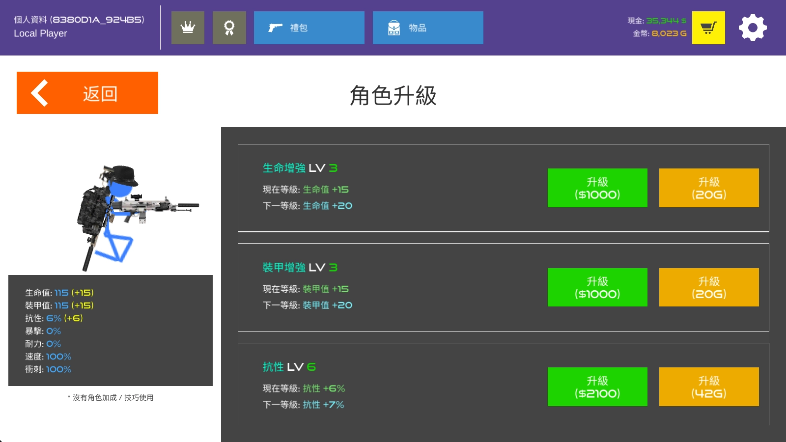在这里,可以提升人物的生命、装甲、抗性等属性。