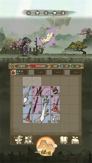 点击“继续”按钮就能继续你的冒险之旅,从而获取更多法宝;而且每次战斗结束后,你都能得到全新的宝物。