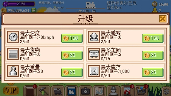 点击第二个锤子图标即可对火车执行升级操作,每次升级所需消耗的金币数量各不相同。