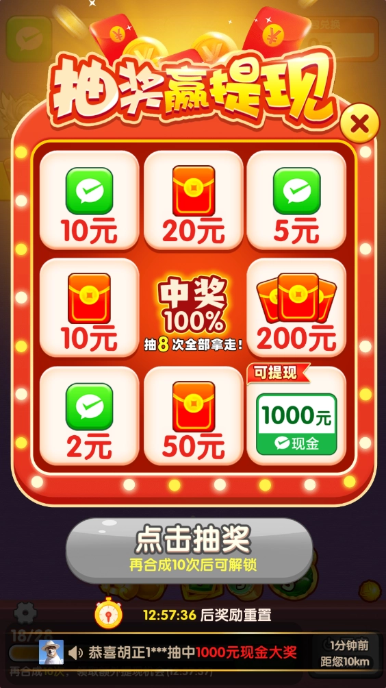 完成一定次数的合成操作后,系统会自动发放抽奖机会,说不定能抽中意想不到的惊喜奖励呢。