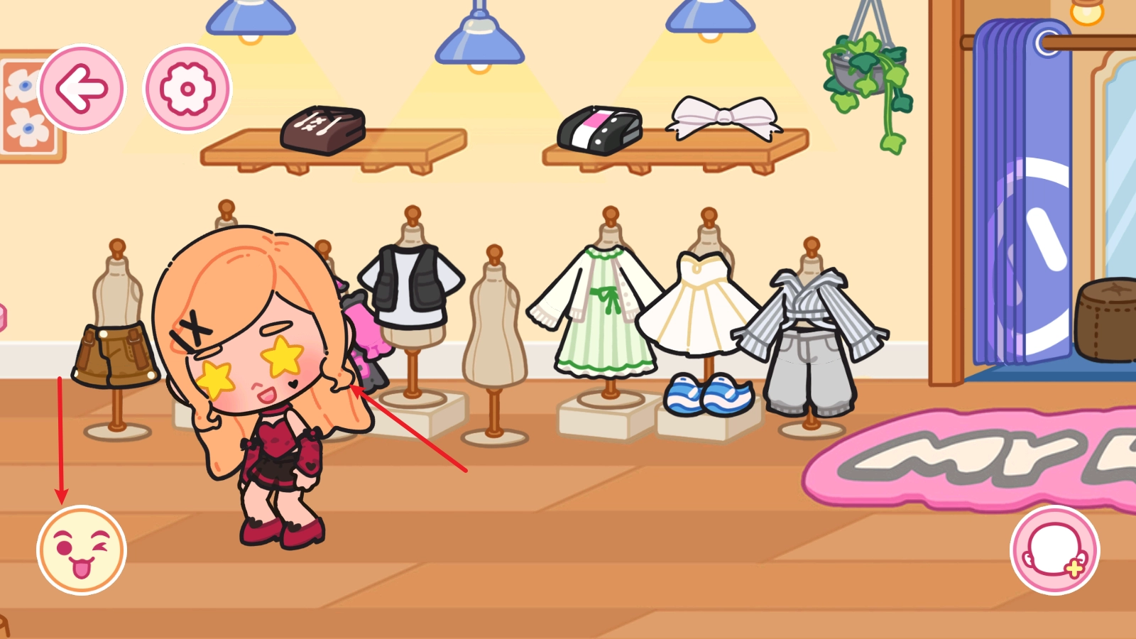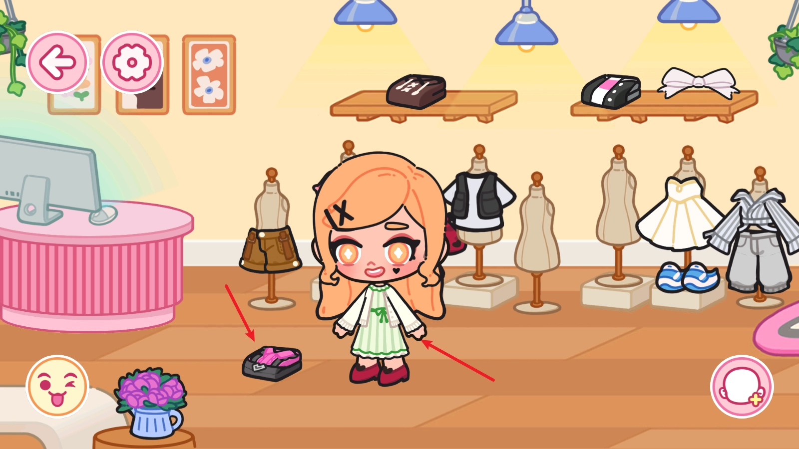 拖动场景里的衣服就能给角色更换装扮啦,原来穿在身上的衣服会直接掉在原地哦。