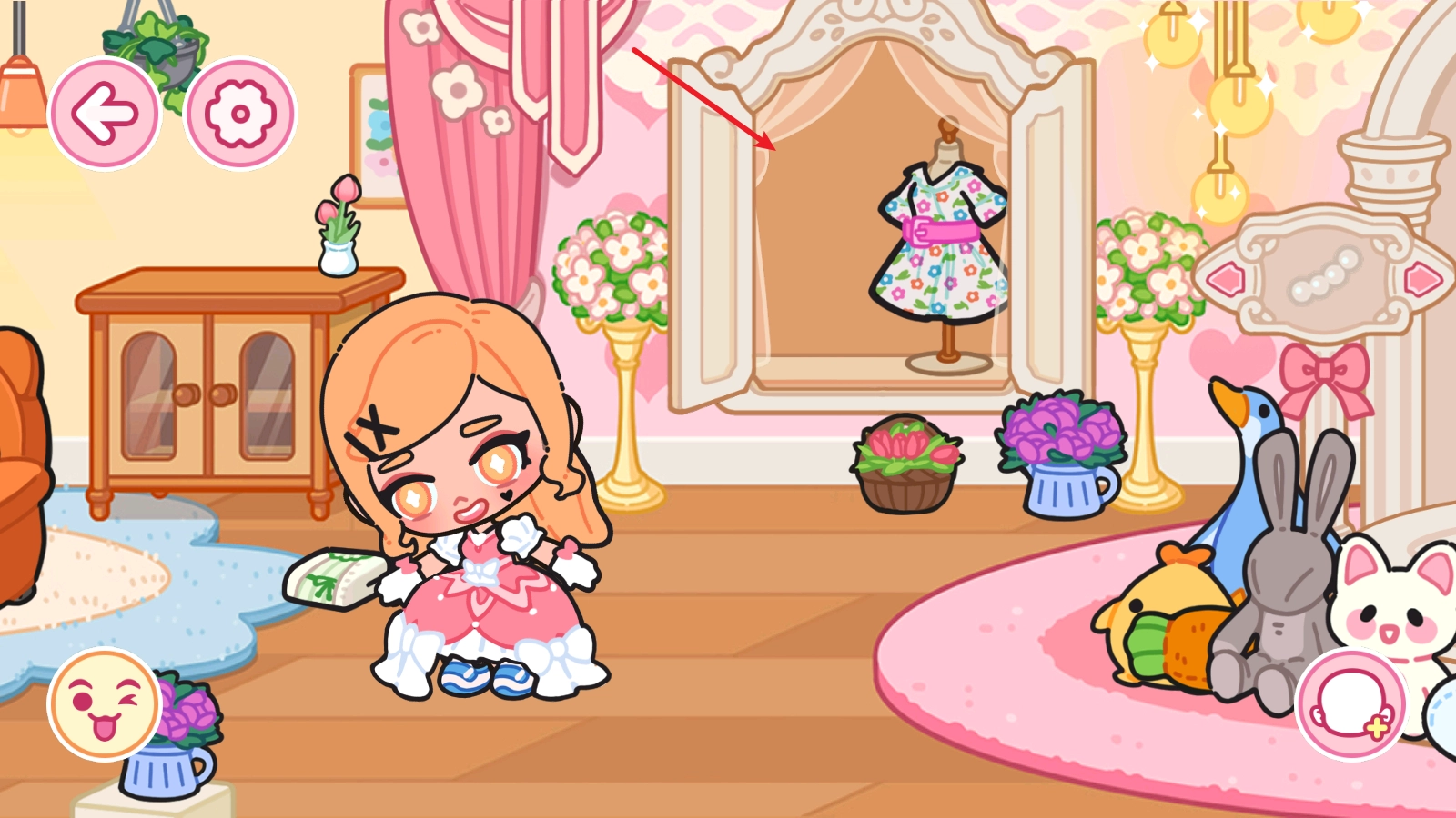 场景里的部分柜子得多点几下,说不定里面藏着隐藏物品呢,像这儿就有好多可爱的裙子!