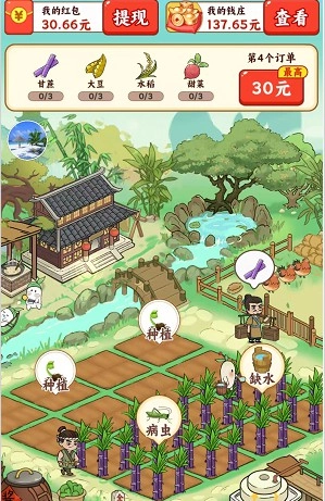玩家通过种植作物完成订单即可领取红包,这些红包是支持兑换的。游戏内设有丰富的订单任务,新手只需完成一两个就能直接兑换。红包奖励采用百分比兑换机制,完成的订单数量越多,兑换比例就越高。