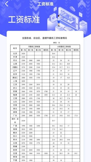 2、点击工资标准,就可以方便去查看各地的工资。