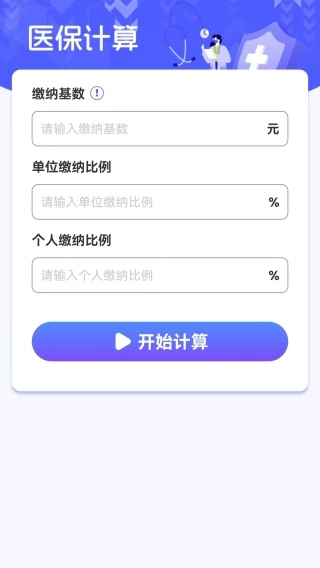 4、医保计算功能,只需输入相关数据,点击一键即可启动计算。