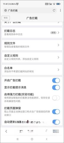开启这个功能后,就能顺畅拦截弹窗、跳转链接和烦人的广告,就算不小心点到广告链接也能轻松处理。尤其是在小说网站,建议单独开启这个强力拦截功能,体验感绝对超棒!